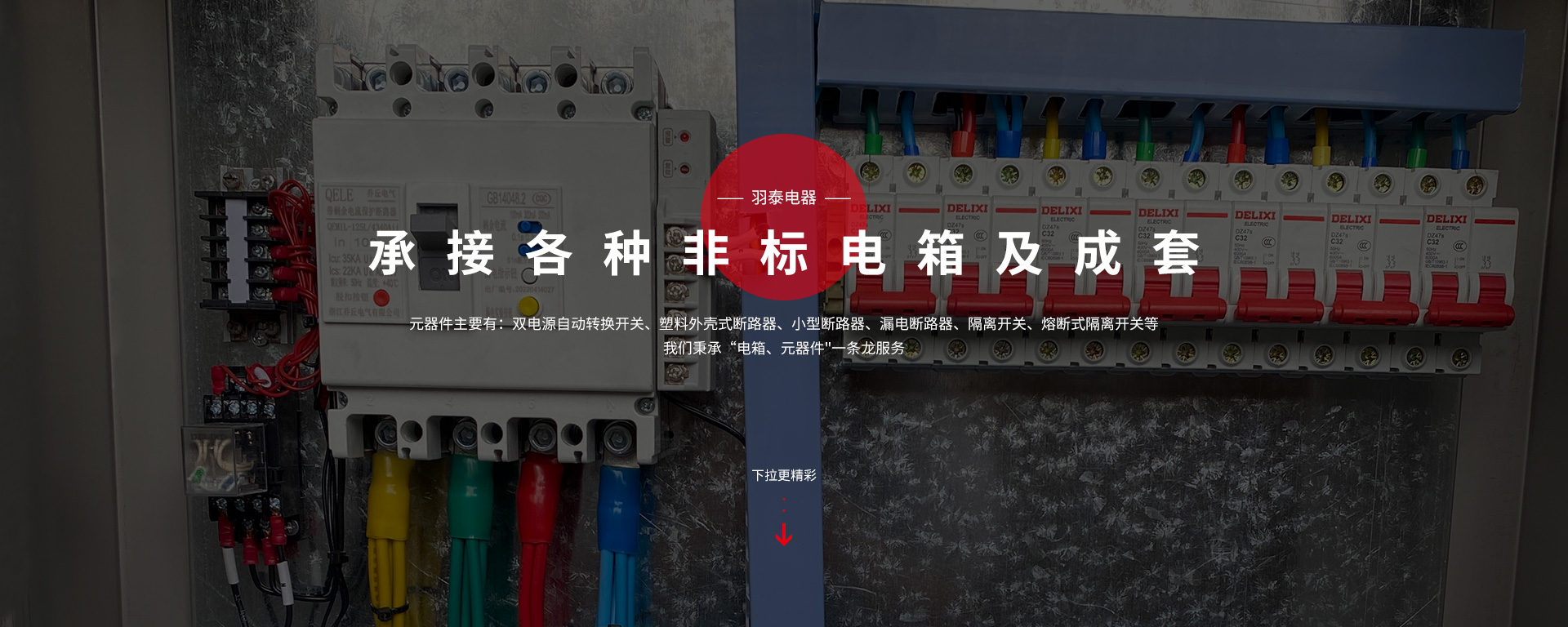 本公司坐落于人杰地靈,“中國制造之都“浙江省臺州市-黃巖。專注工業(yè)電氣領(lǐng)域,是一家集科研、生產(chǎn)、銷售為一體的較全方面型電氣企業(yè)。主要生產(chǎn):低壓成套配電箱、配電柜、電表箱、動力箱、照明箱、工地臨時箱、設(shè)備控制箱,以及各種元器件。元器件主要有:雙電源自動轉(zhuǎn)換開關(guān)、塑料外殼式斷路器、小型斷路器、漏電斷路器;隔離開關(guān)、熔斷式隔離開關(guān)等,公司產(chǎn)品嚴(yán)格按照國家CQC,CCC標(biāo)準(zhǔn)執(zhí)行,滿足于家庭與工業(yè)要求。我們秉承“電箱、元器件"一條龍服務(wù)。